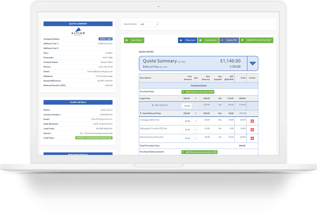 It should be very easy for the sales agents to update the quotes, send emails to consumers and view history of actions and events happened on the lead. When the consumer is ready it should be very easy to convert the lead into and instruction and allocate to the choosen law firm and intimate the consumers.